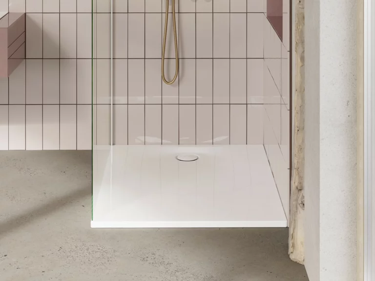 Gefertigt aus glasiertem Titan-Stahl überzeugt die Duschwanne mit ihrer außergewöhnlichen Robustheit und einer Tiefe von nur 15 mm.